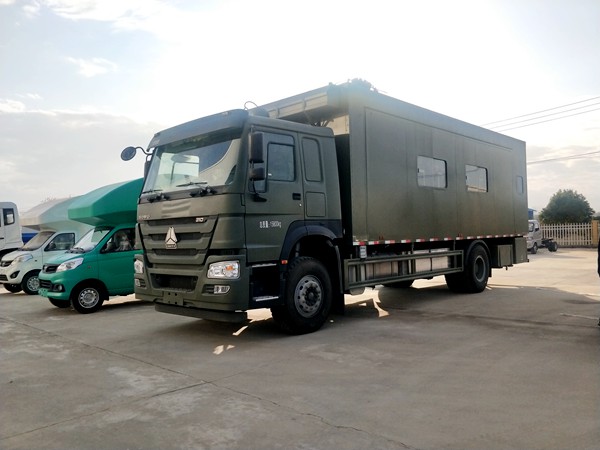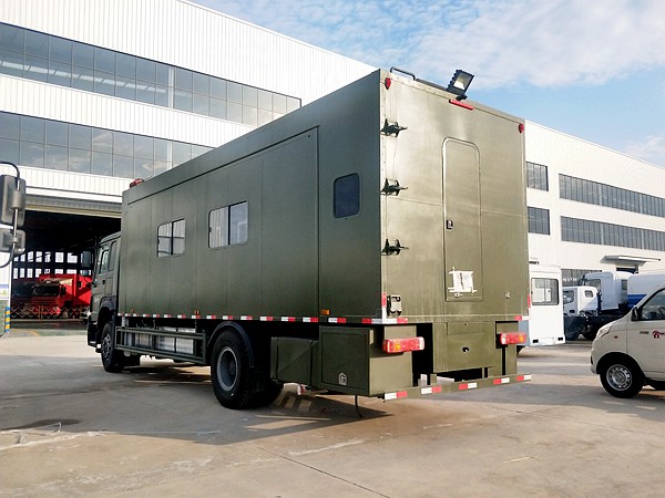 宿營車上,設置了床位,衛生間,**用空調,換氣逃生窗口,高原灶,抽油煙機,衛星電視,煙霧傳感器,發電機,照明設備,暖風機,保險柜等。這輛車廚房,衛生間,床鋪一應俱全,保證了野外住宿的舒適性,使官兵更好的執行野外任務。